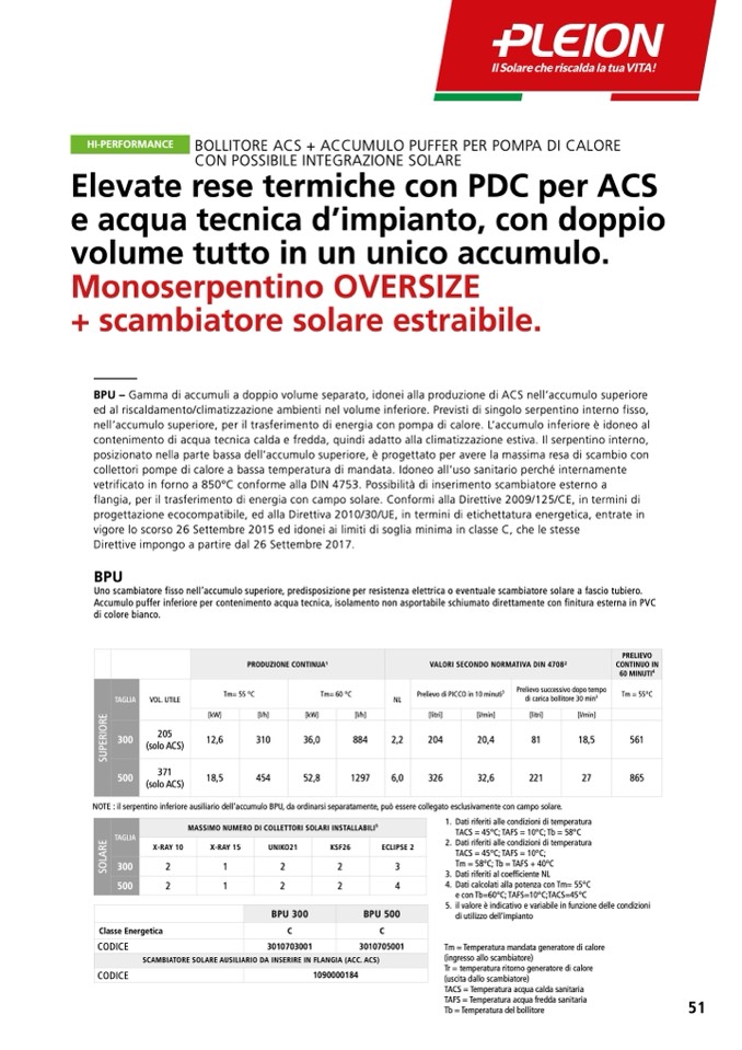 BPU – Gamma di accumuli a doppio volume separato, idonei alla produzione di ACS nell’accumulo superiore