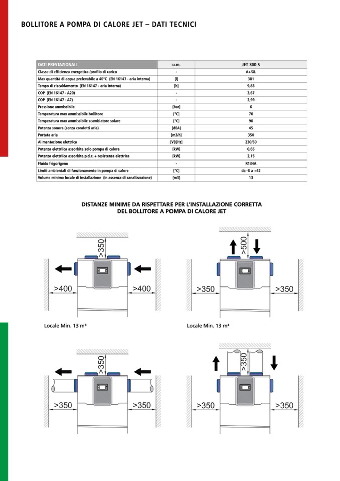 Volume minimo locale di installazione (in assenza di canalizzazione)