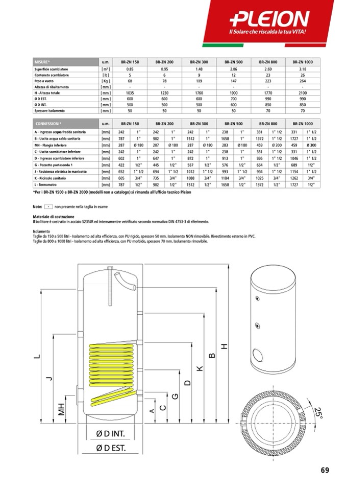 Il bollitore è costruito in acciaio S235JR ed internamentre vetrificato secondo normativa DIN 4753-3 di riferimento.