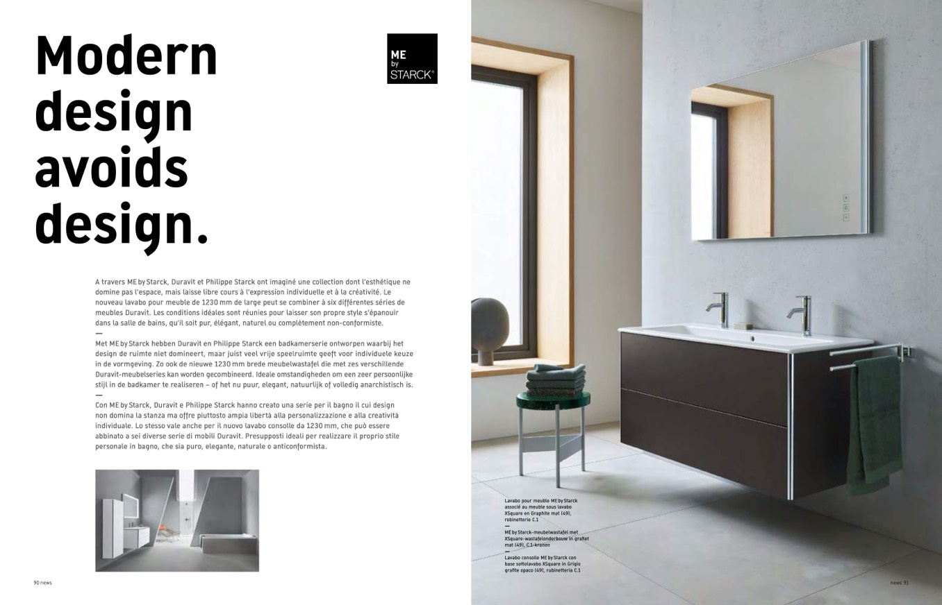 Con ME by Starck, Duravit e Philippe Starck hanno creato una serie per il bagno il cui design