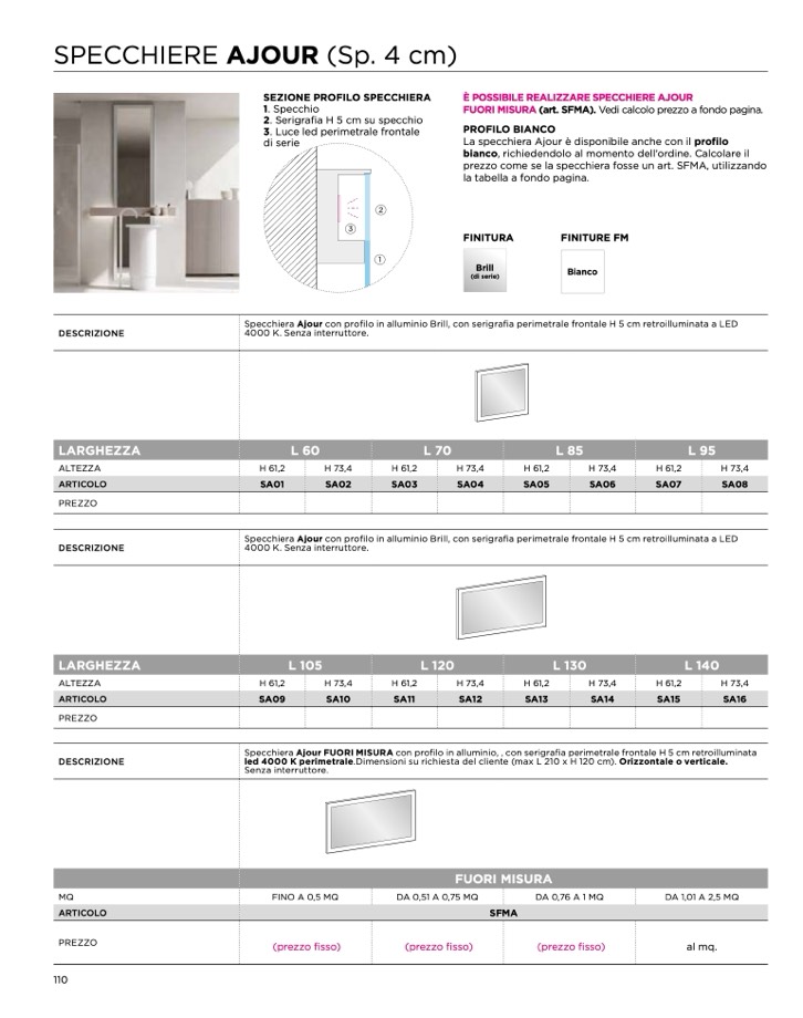 prezzo come se la specchiera fosse un art. SFMA, utilizzando