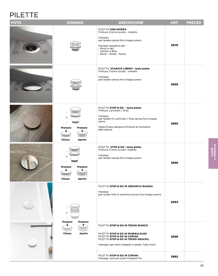 Impiego: per piani integrati e lavabi Tutto Fuori