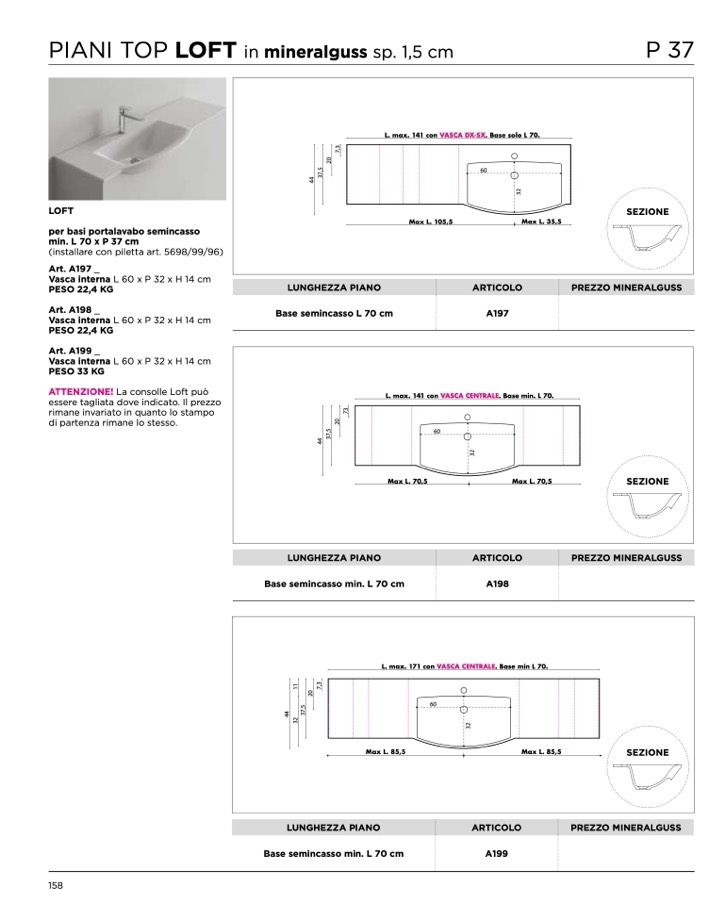 L. max. 171 con VASCA CENTRALE. Base min L 70.