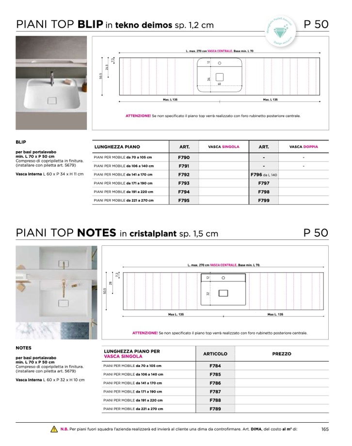 N.B. Per piani fuori squadra l’azienda realizzerà ed invierà al cliente una dima da controfirmare. Art. DIMA, del costo al m