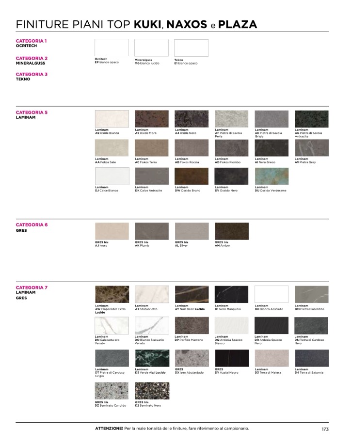 ATTENZIONE! Per la reale tonalità delle finiture, fare riferimento al campionario.