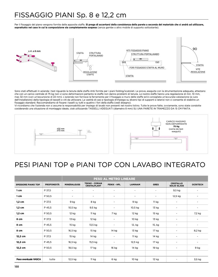 Per il fissaggio del piano vengono fornite delle apposite staffe. Si prega di accertarsi della consistenza della parete a seconda del materiale che si andrà ad utilizzare,