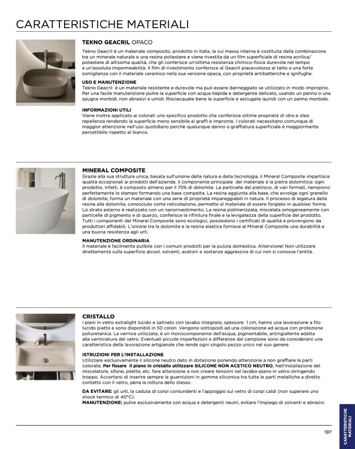 produttori affidabili. L’unione tra la dolomite e la resina elastica fornisce al Mineral Composite una durabilità e