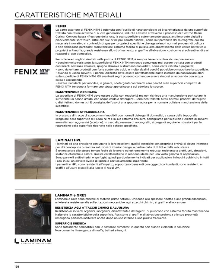 irregolare della superficie di FENIX NTM e la sua estrema chiusura, consigliamo per la pulizia l’utilizzo di solventi
