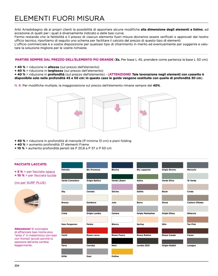 Arbi Arredobagno dà ai propri clienti la possibilità di apportare alcune modifiche alla dimensione degli elementi a listino, ad
