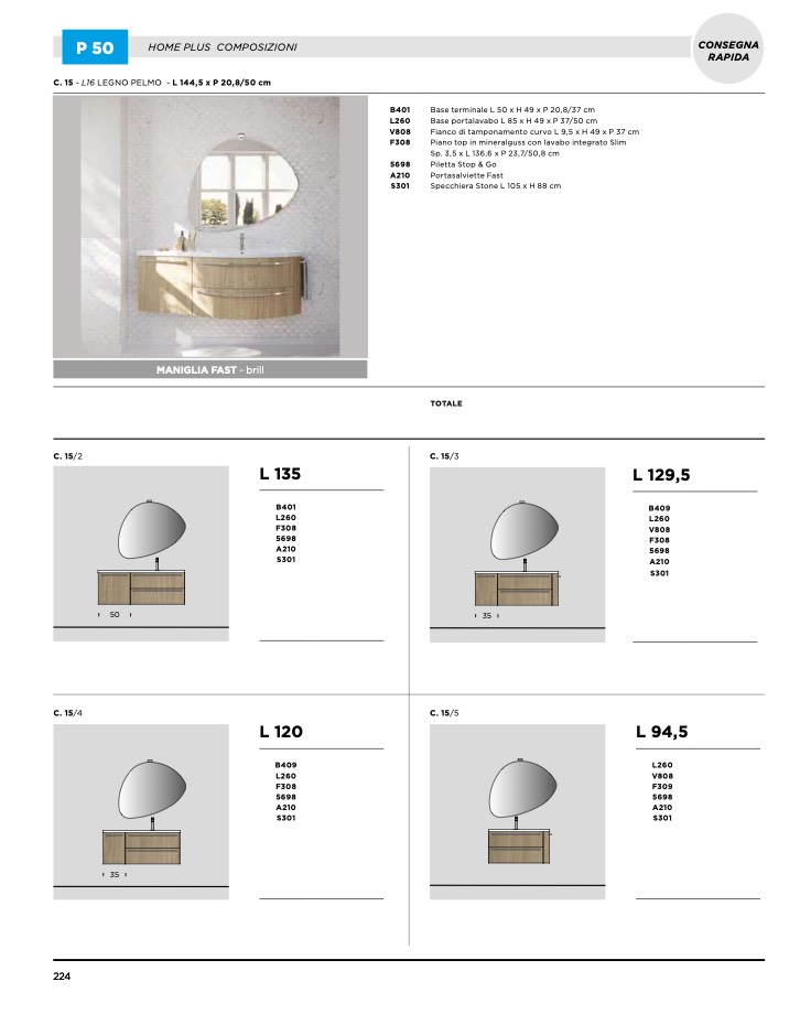 C. 15 - L16 LEGNO PELMO - L 144,5 x P 20,8/50 cm