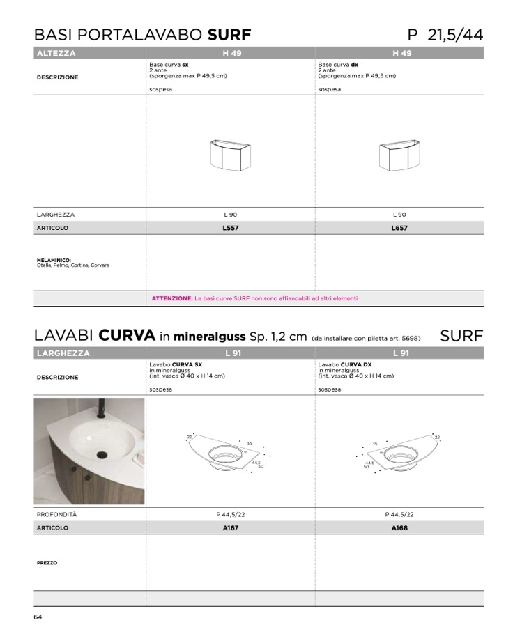ATTENZIONE: Le basi curve SURF non sono affiancabili ad altri elementi