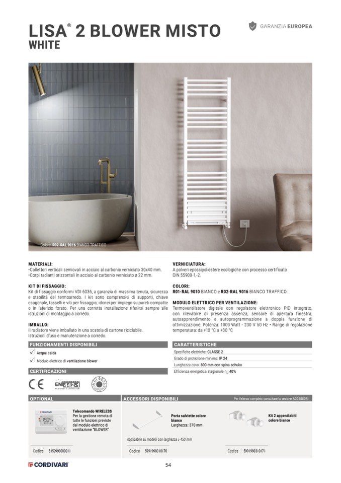 Colore: R02-RAL 9016 BIANCO TRAFFICO