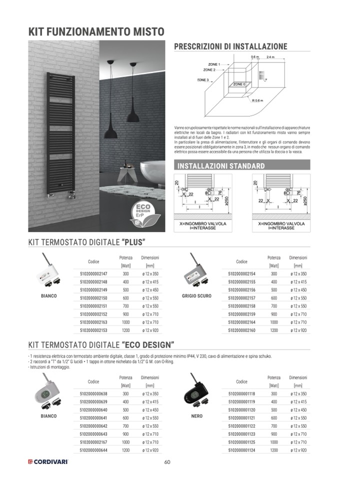 elettriche nei locali da bagno. I radiatori con kit funzionamento misto vanno sempre