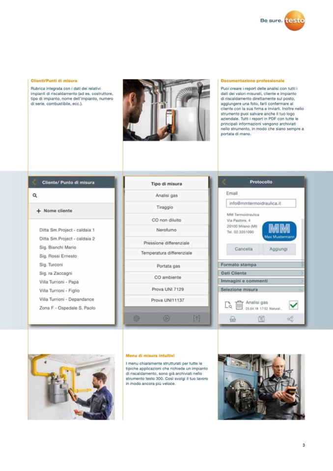 dati dei valori misurati, cliente e impianto