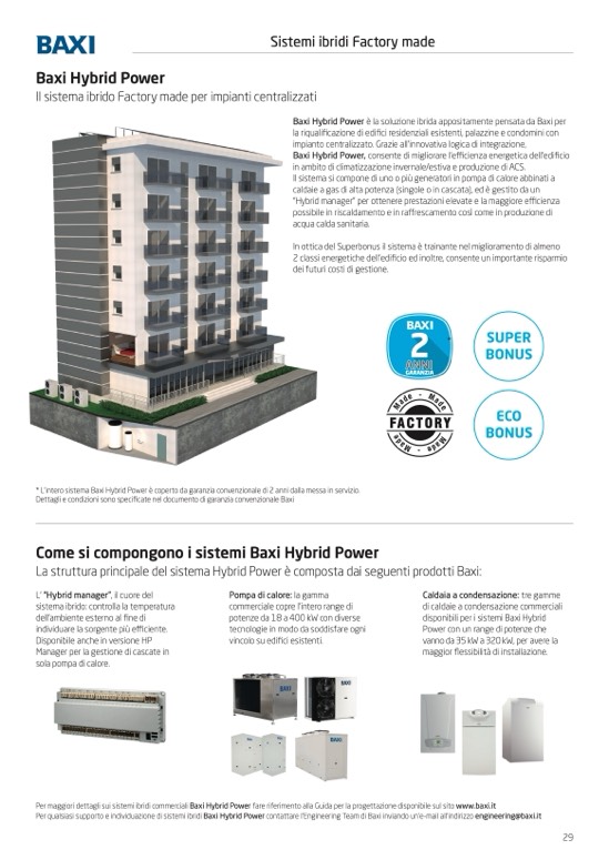 Per qualsiasi supporto e individuazione di sistemi ibridi Baxi Hybrid Power contattare l’Engineering Team di Baxi inviando un’e-mail all’indirizzo engineering@baxi.it