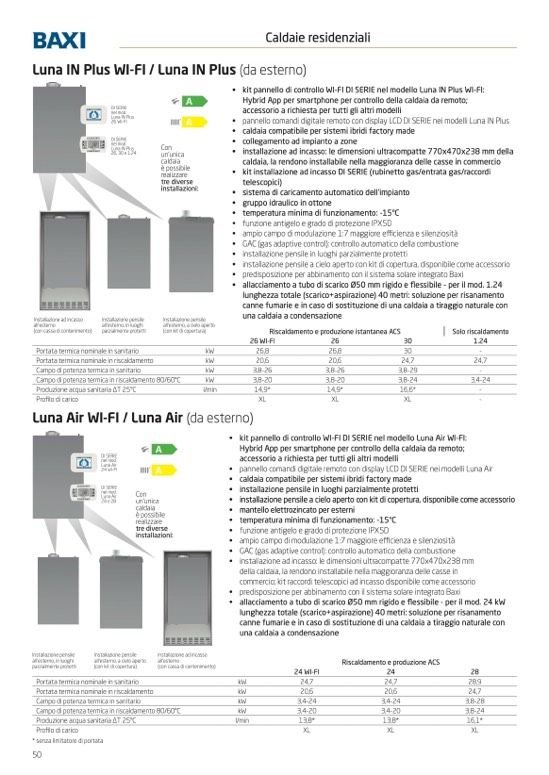 • predisposizione per abbinamento con il sistema solare integrato Baxi