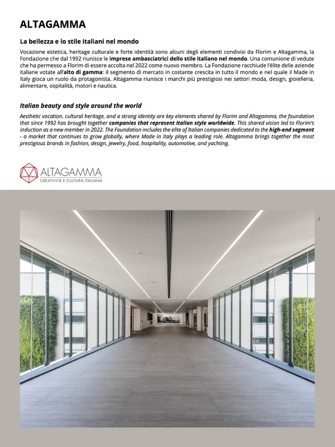 that since 1992 has brought together companies that represent Italian style worldwide. This shared vision led to Florim’s