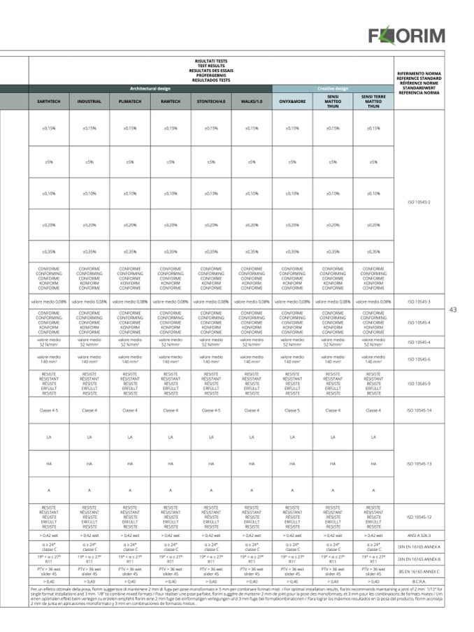 ffetto ottimale della posa, florim suggerisce di mantenere 2 mm di fuga per pose monoformato e 3 mm per combinare formati misti / For optimal installation results, florim recommends maintaining a joint of 2 mm 1/12” fo