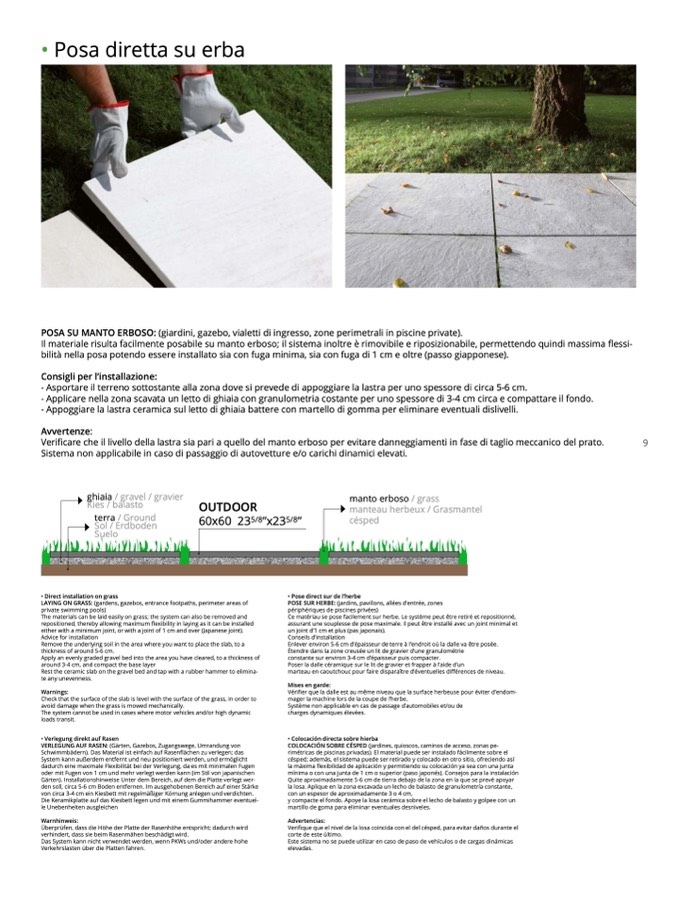 ficare che il livello della lastra sia pari a quello del manto erboso per evitare danneggiamenti in fase di taglio meccanico del prato