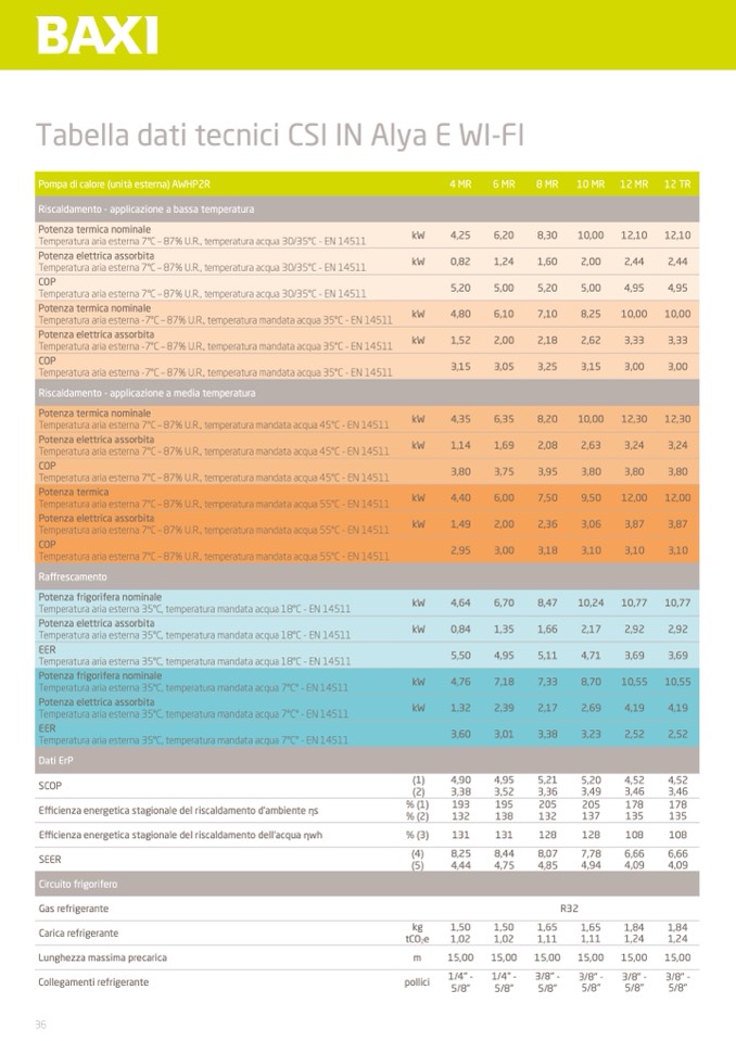 Temperatura aria esterna -7°C – 87% U.R., temperatura mandata acqua 35°C - EN 14511