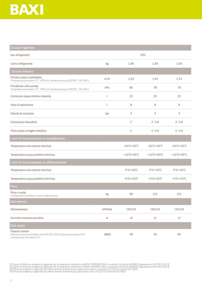 (1) Classe di efficienza energetica stagionale del riscaldamento d’ambiente a BASSA TEMPERATURA in condizioni climatiche AVERAGE (regolamento UE N° 811/2013)