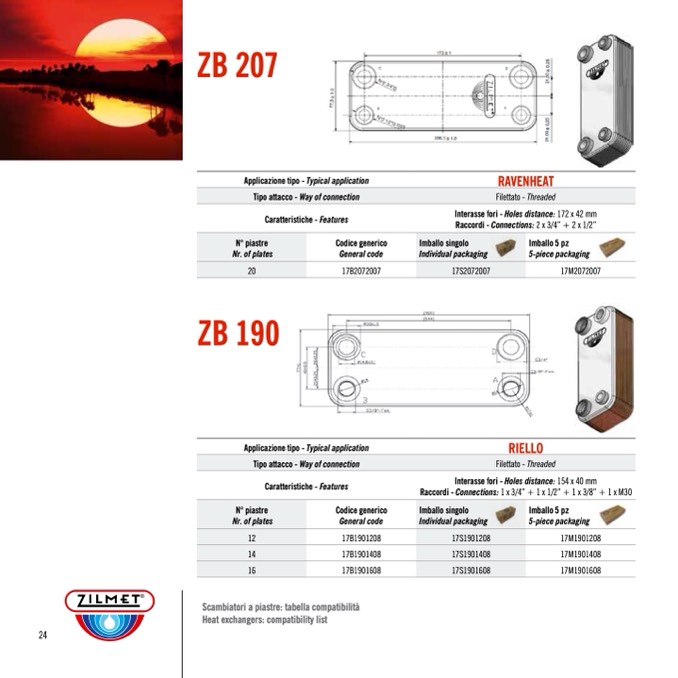 Scambiatori a piastre: tabella compatibilità