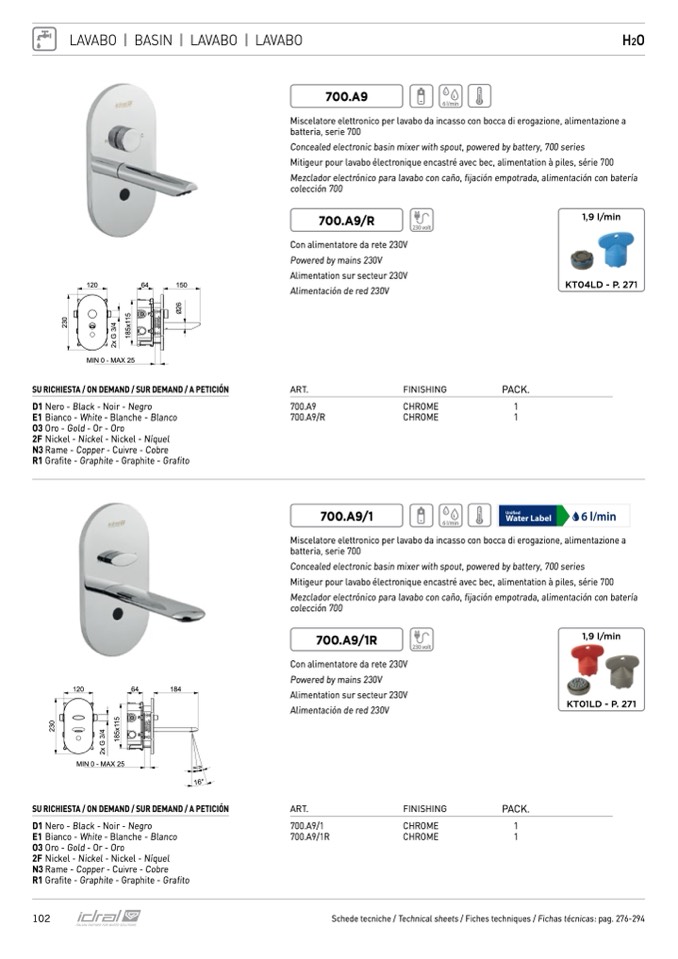 Schede tecniche / Technical sheets / Fiches techniques / Fichas técnicas: pag. 276-294