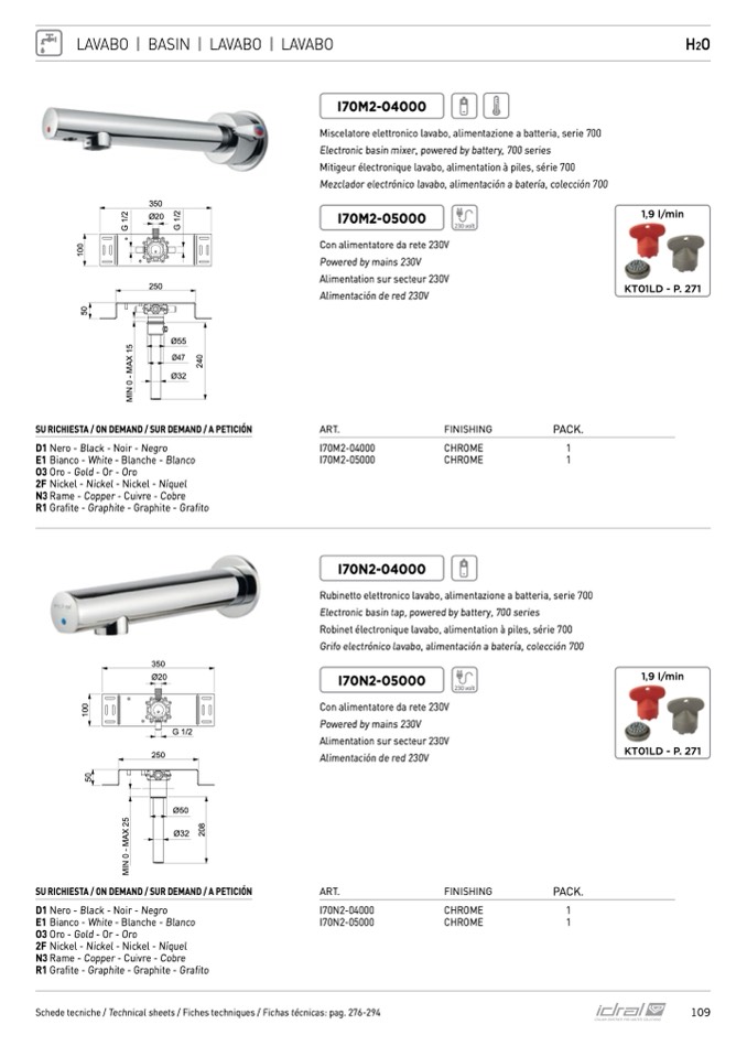 Schede tecniche / Technical sheets / Fiches techniques / Fichas técnicas: pag. 276-294
