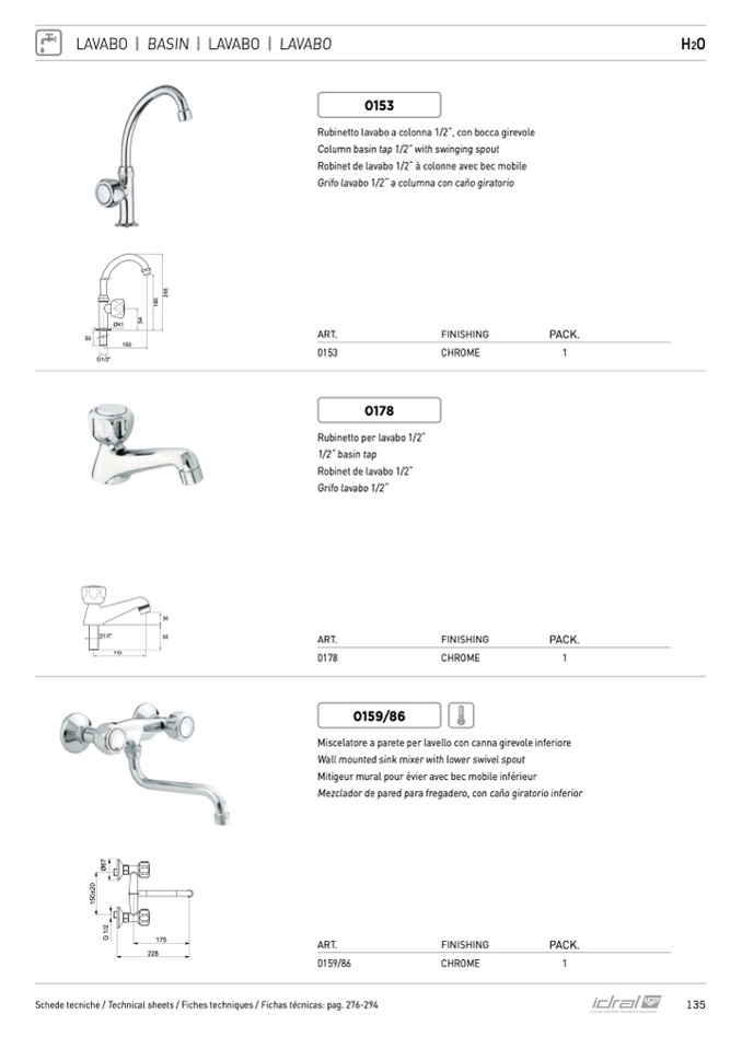 Schede tecniche / Technical sheets / Fiches techniques / Fichas técnicas: pag. 276-294