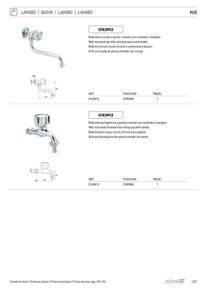 Schede tecniche / Technical sheets / Fiches techniques / Fichas técnicas: pag. 276-294