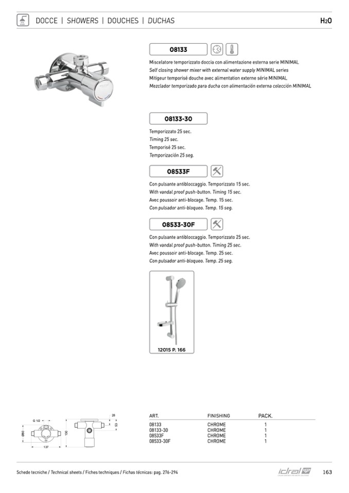 Mezclador temporizado para ducha con alimentación externa colección MINIMAL