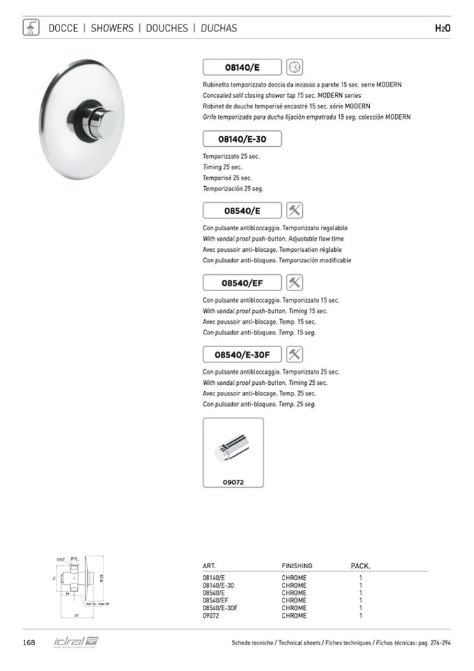 Grifo temporizado para ducha fijación empotrada 15 seg. colección MODERN