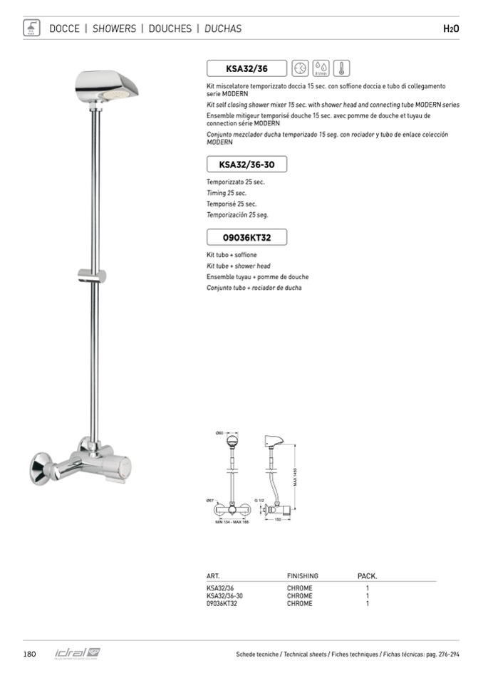 Kit miscelatore temporizzato doccia 15 sec. con soffione doccia e tubo di collegamento