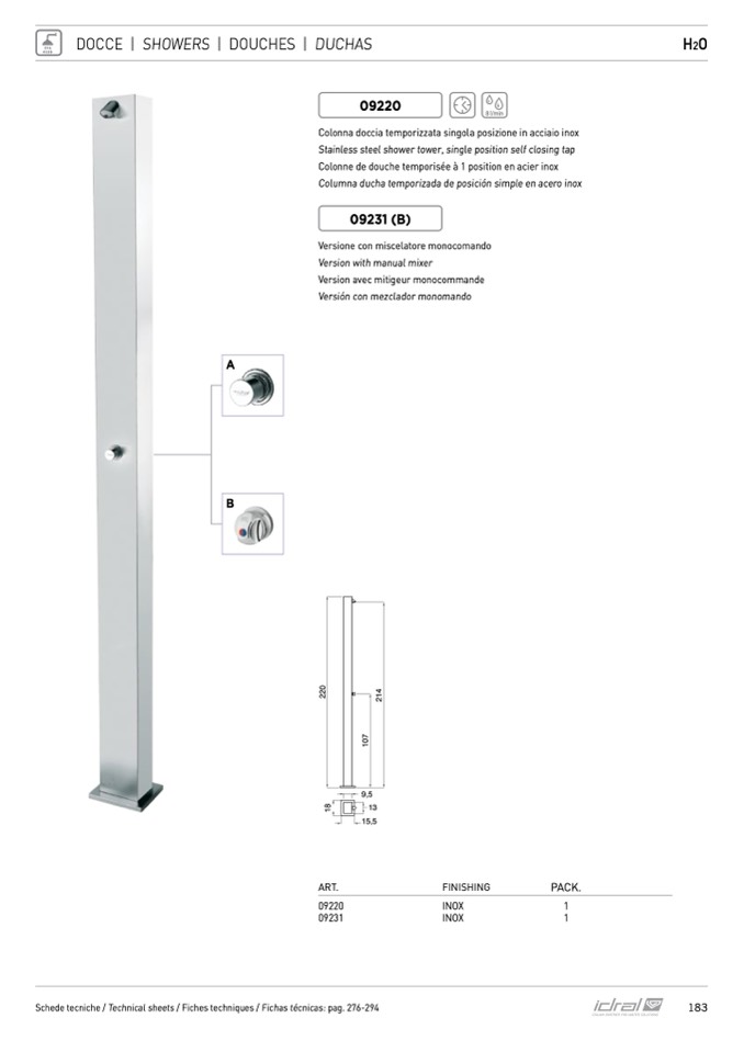 Colonna doccia temporizzata singola posizione in acciaio inox