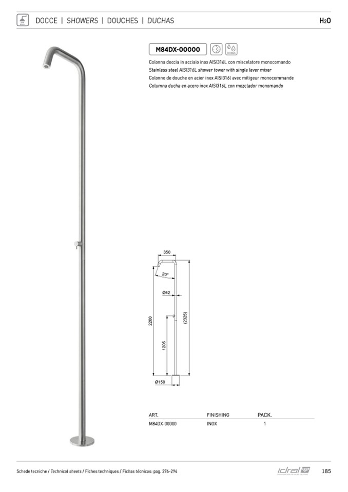 Columna ducha en acero inox AISI316L con mezclador monomando