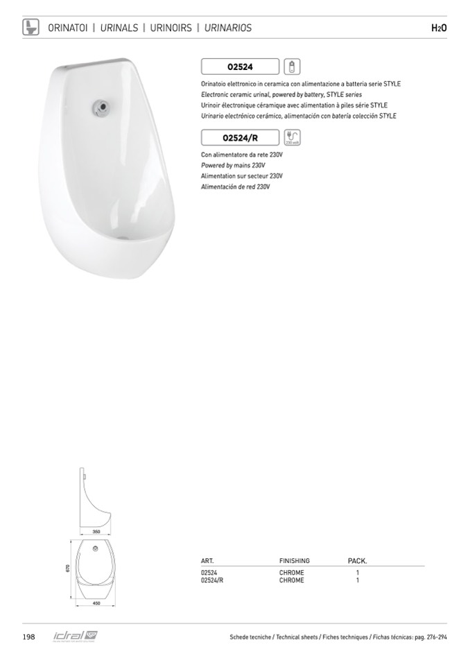Urinario electrónico cerámico, alimentación con batería colección STYLE