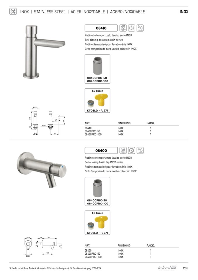 Schede tecniche / Technical sheets / Fiches techniques / Fichas técnicas: pag. 276-294