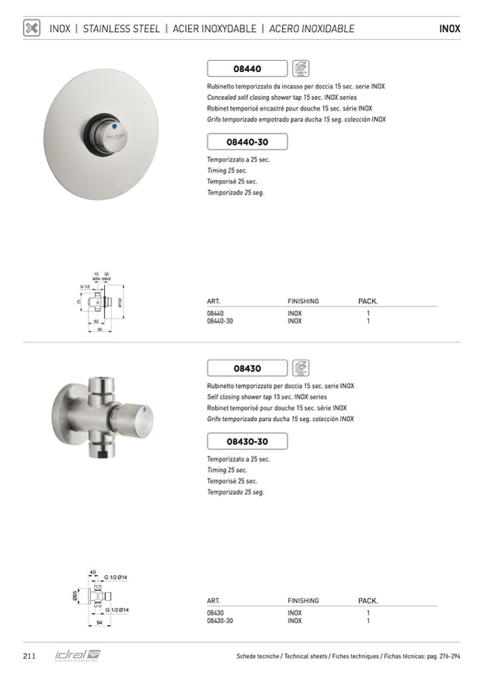 Rubinetto temporizzato per doccia 15 sec. serie INOX