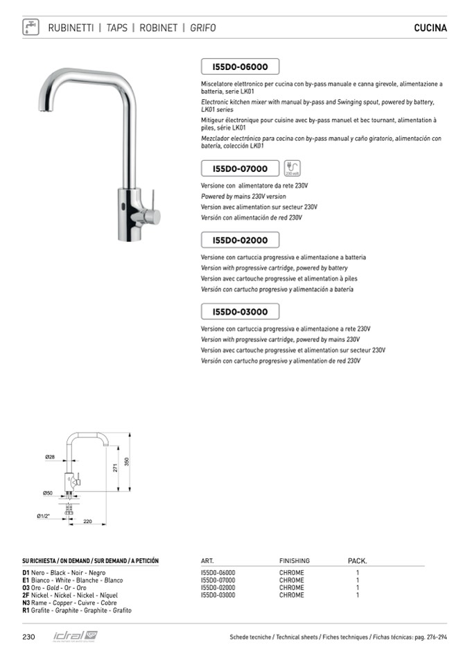 Schede tecniche / Technical sheets / Fiches techniques / Fichas técnicas: pag. 276-294