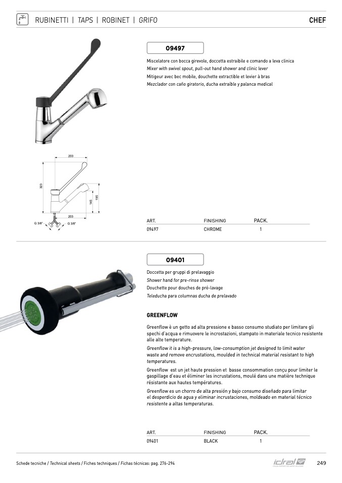 Schede tecniche / Technical sheets / Fiches techniques / Fichas técnicas: pag. 276-294