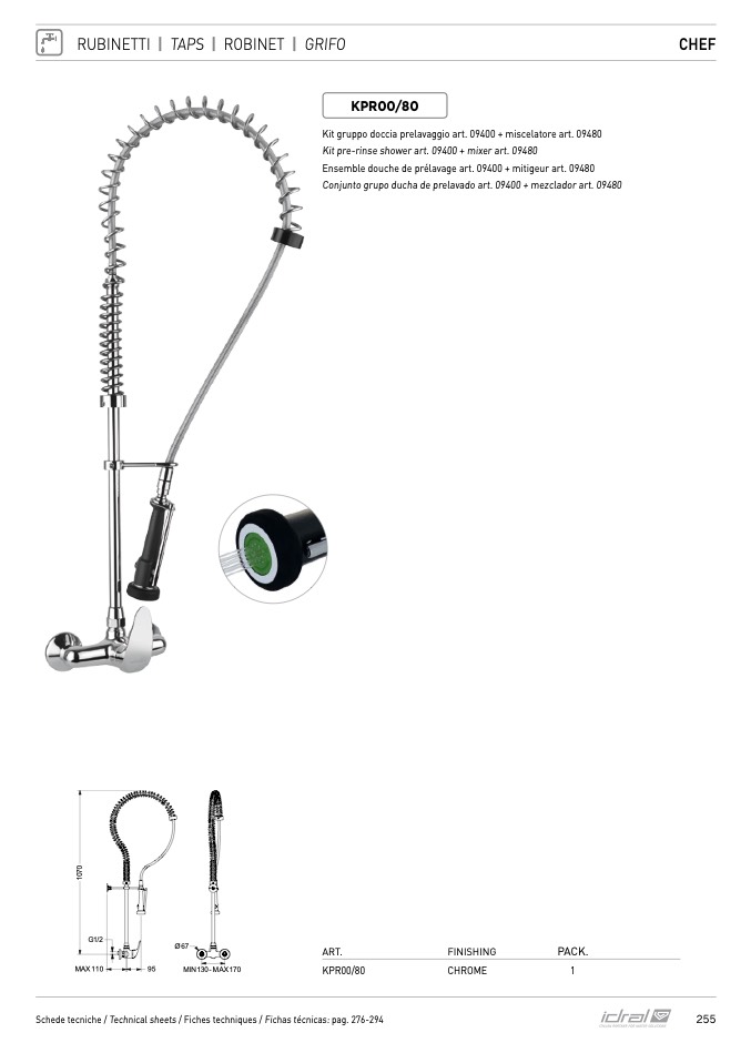 Kit pre-rinse shower art. 09400 + mixer art. 09480