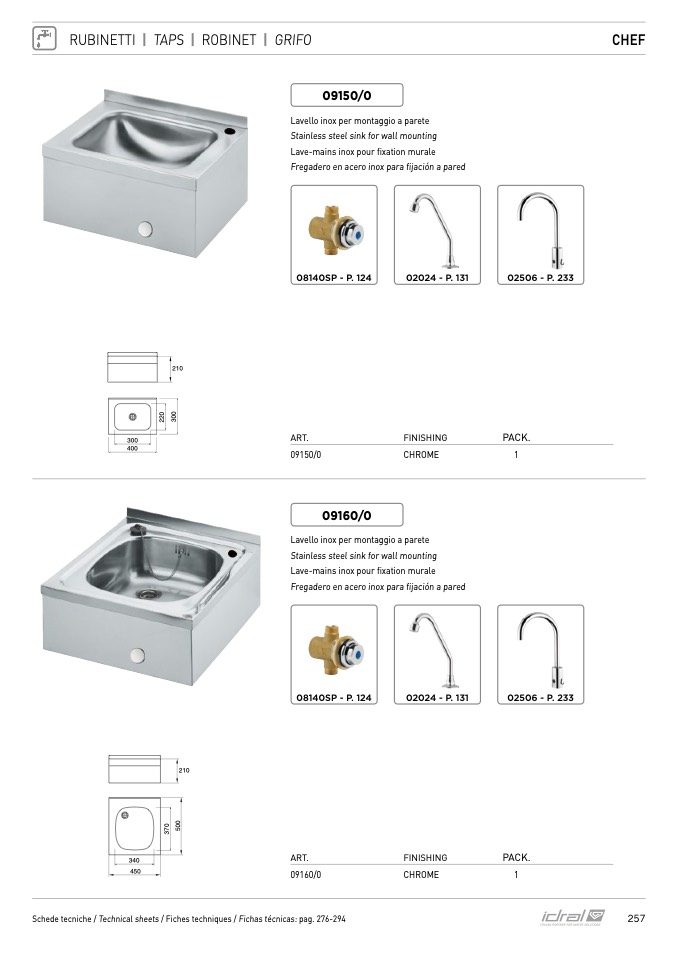 Schede tecniche / Technical sheets / Fiches techniques / Fichas técnicas: pag. 276-294