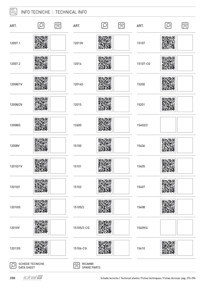 Schede tecniche / Technical sheets / Fiches techniques / Fichas técnicas: pag. 276-294