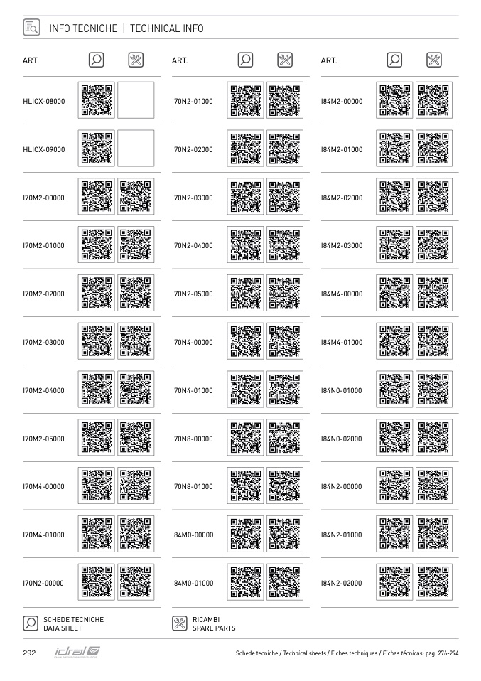 Schede tecniche / Technical sheets / Fiches techniques / Fichas técnicas: pag. 276-294