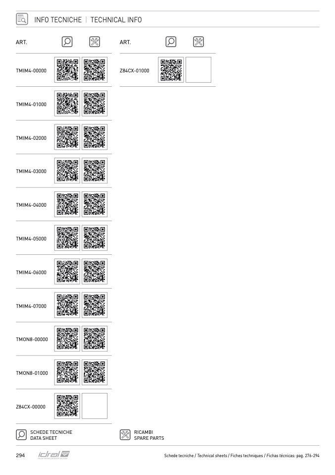 Schede tecniche / Technical sheets / Fiches techniques / Fichas técnicas: pag. 276-294