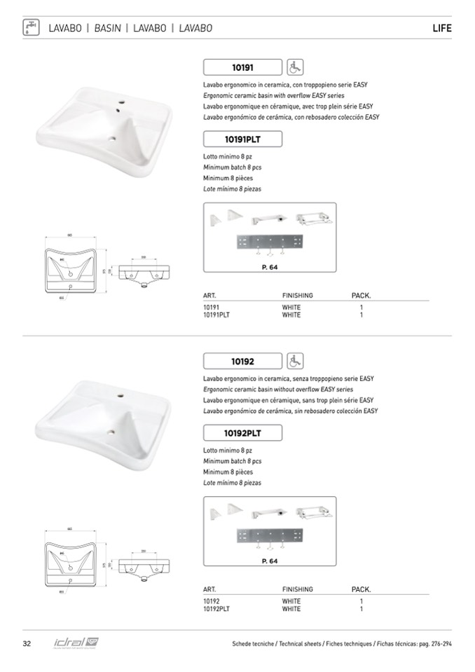 Schede tecniche / Technical sheets / Fiches techniques / Fichas técnicas: pag. 276-294
