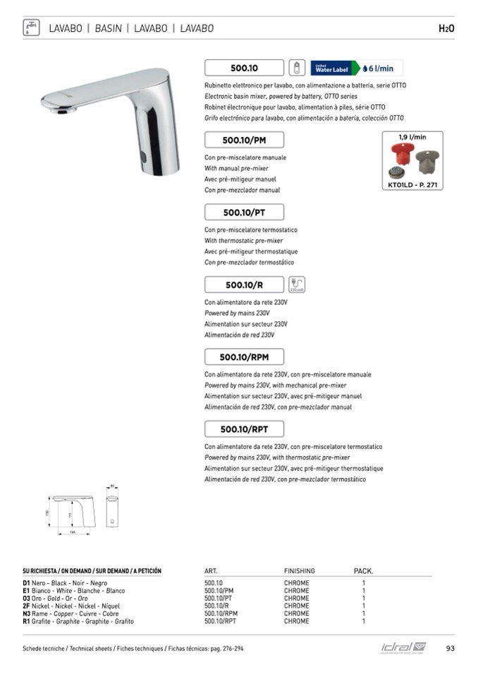 Schede tecniche / Technical sheets / Fiches techniques / Fichas técnicas: pag. 276-294