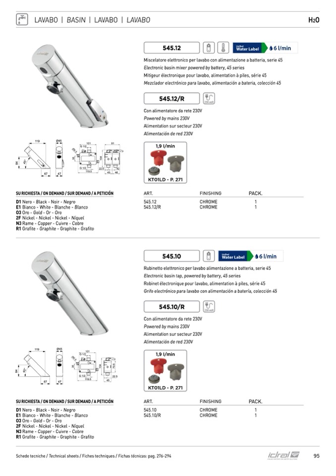 Schede tecniche / Technical sheets / Fiches techniques / Fichas técnicas: pag. 276-294
