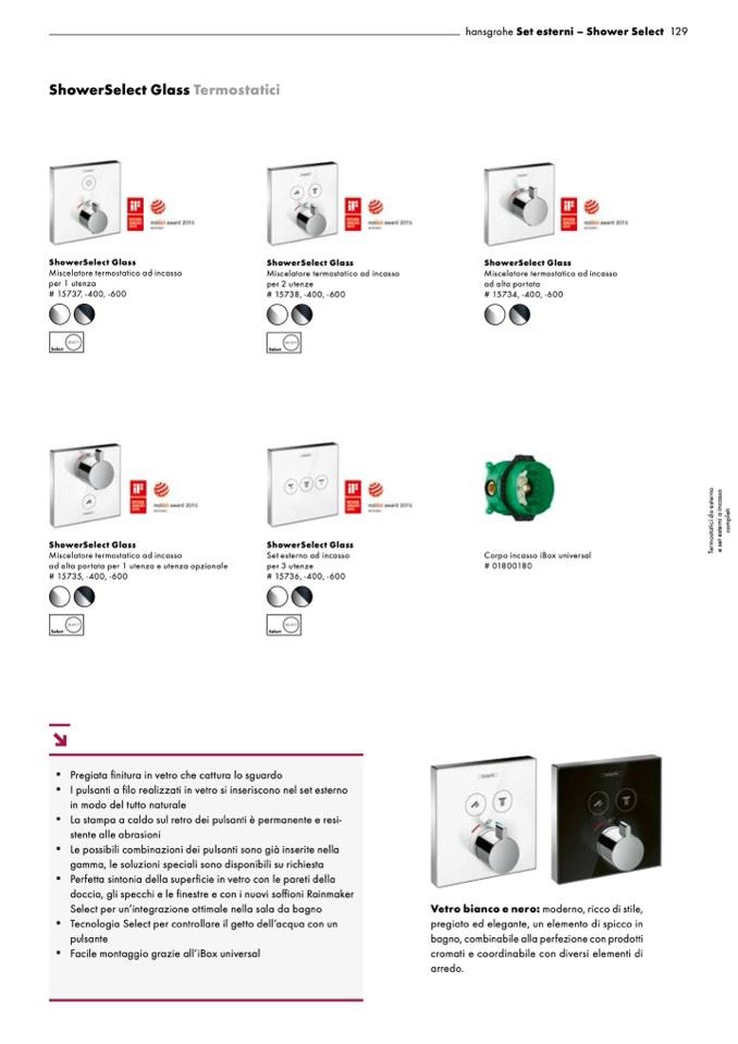 ▪ Perfetta sintonia della superficie in vetro con le pareti della