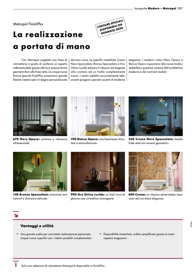 Solo una selezione di rubinetterie Metropol è disponibile in FinishPlus.